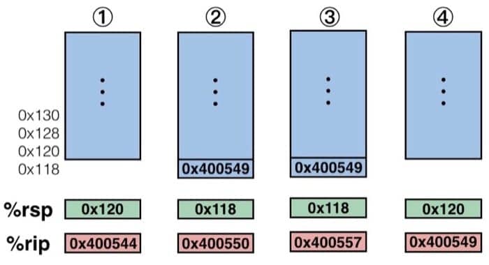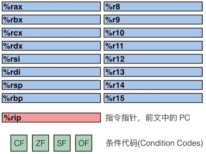 - 程序计数器(PC, Program counter) - 存着下一条指令的地址,在 x86-64 中称为 RIP