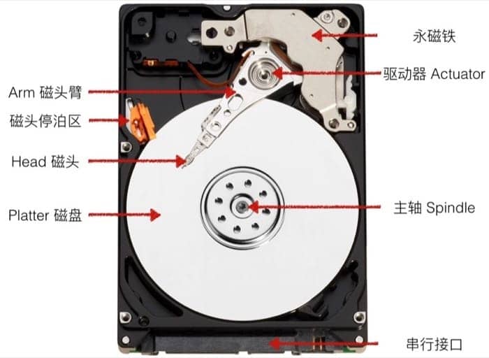虽然现在越来越多电脑已经改为使用固态硬盘,但是还是有必要了解一下硬盘的组成的。传统的机械硬盘有许多不同的部件: