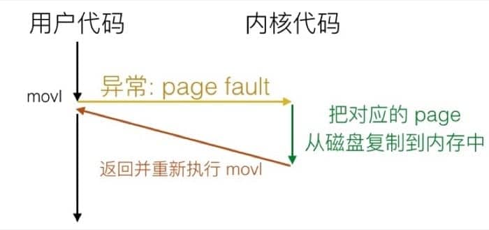 那么系统会通过 Page Fault 把对应的部分载入到内存中,然后重新执行赋值语句: