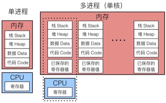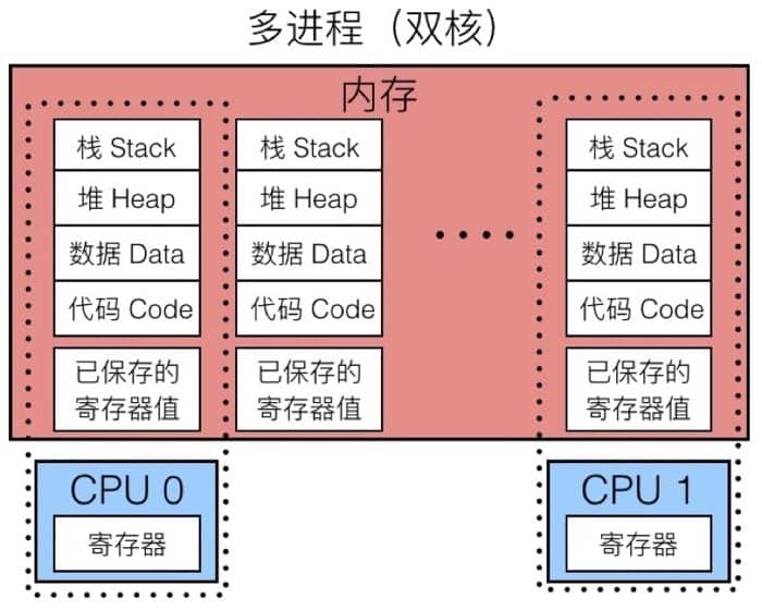 计算机虽然只有一个 CPU,但操作系统能够将程序的执行单位细化,然后分开执行,从而实现伪并行执行。这种伪并行执行称为并发(concurrent)。使用多个 CPU 真的同时执行称为并行(parallel)