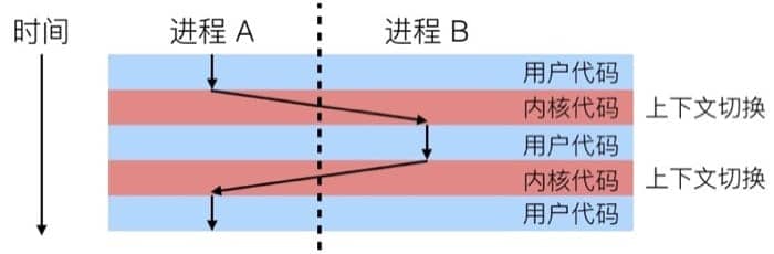 比较常见的中断有两种:计时器中断和 I/O 中断。计时器中断是由计时器芯片每隔几毫秒触发的,内核用计时器终端来从用户程序手上拿回控制权。I/O 中断类型比较多样,比方说键盘输入了 ctrl-c,网络中一个包接收完毕,都会触发这样的中断。